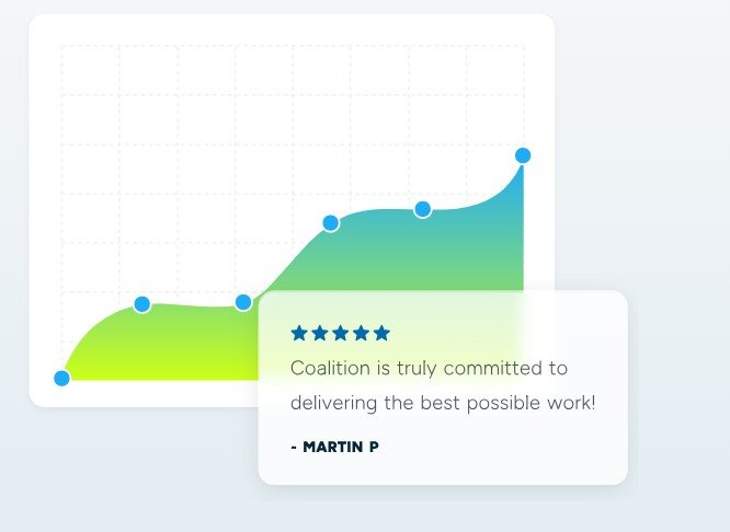 Ninety-two percent of Americans use a search engine as their browser’s homepage. And more people are starting their search with AI tools and LLMs like ChatGPT and Gemini every day. This is where your customers start their search, and it’s where they’ll find you. Coalition will fully handle your SEO campaign, including making technical adjustments in site code, writing copy, building links, getting press coverage, and ultimately dramatically increasing your profitability. We have a 98% client retention rate because going above and beyond for our SEO clients is built right into our DNA.